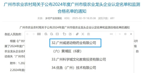而此次威诺动物药业的成功入选,标志着其在宠物医疗健康领域的专业实力获得全方位认可,同时也印证了其对广州现代农业高质量发展的积极贡献。