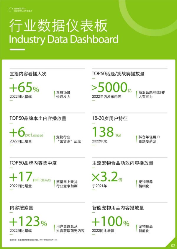 而抖音作为宠物行业充满生机的增长阵地,巨量算数&算数电商研究院发布的《2022抖音宠物行业年度盘点》中显示,2022年抖音宠物行业直播看播人次同比增长65%,内容搜索量大幅提升123%,火热的内容大盘展现出用户对抖音的信任持续加深。