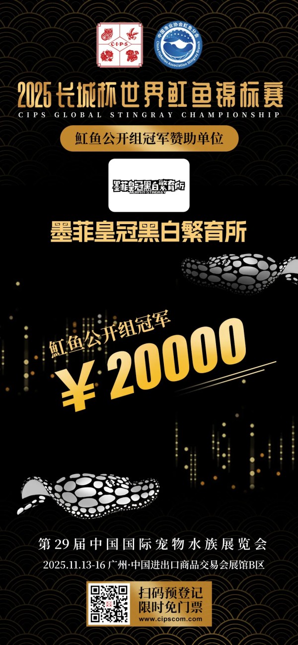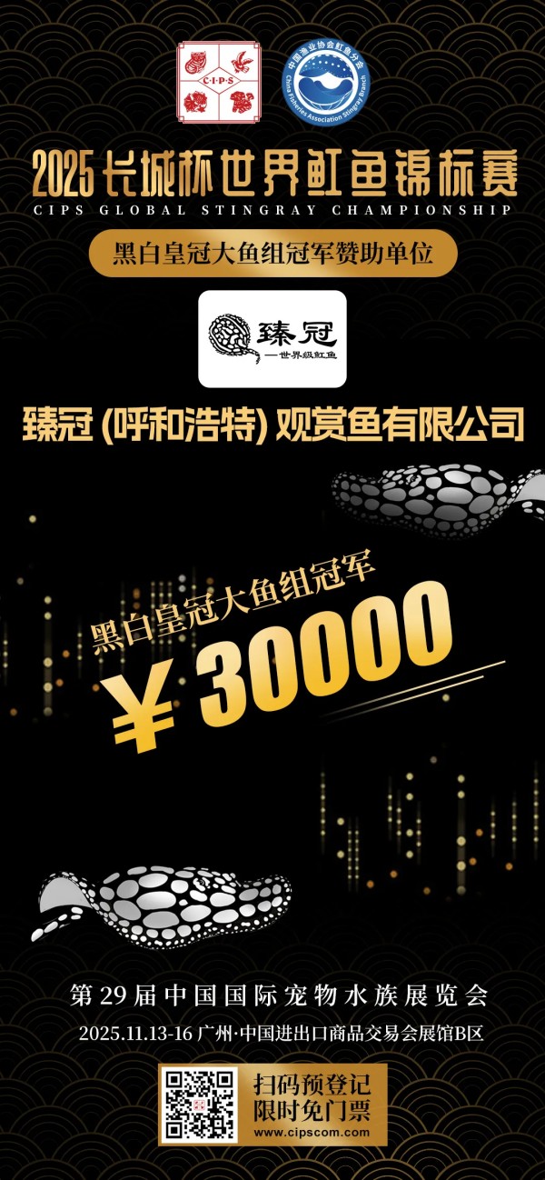 包头市泓龙观赏鱼有限公司 黑白皇冠小鱼组冠军奖金: 包头泓龙观赏鱼有限公司是中国渔业协会龙鱼分会常务理事单位,旗下有北域腾霄和魟龙汇龙鱼品牌。臻冠(包头)观赏鱼有限公司是中国渔业协会魟鱼分会常务理事单位,旗下有臻冠魟鱼品牌。公司在行业耕耘已有10余载。 公司深耕高端观赏鱼产业链,主营中高端龙鱼销售、专注皇冠黑白魟鱼繁殖销售。 已建成2000余平米现代化养殖基地与鱼只展示厅,配备智能水质系统、标准化养殖流程与专业的售后团队。 致力于打造中国北方首个文化型高端龙鱼/魟鱼品牌。 成为中国北方最具有文化表达力与精神穿透力的高端品牌。