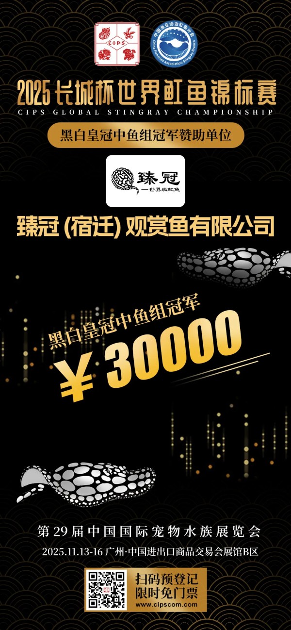 臻冠(宿迁)观赏鱼有限公司 黑白皇冠中鱼组冠军奖金: 2013年,以黑白皇冠繁殖为核心方向开启行业深耕之路。初期聚焦优质种源积累,通过建立国内外双线采购渠道,精准筛选并收购顶级皇冠、皇冠线条等稀缺鱼种,同时同步启动血系专项研究,系统梳理不同品系的基因特征与遗传规律。在此基础上,主导开展种鱼精选工作,结合繁殖实践不断调整配种方案,逐步推进血系改良与品质升级,不仅积累了大量一手繁育数据,更形成了一套适配黑白皇冠特性的初期改血技术体系,为后续发展筑牢根基。 2022年,随着团队专业能力与资源整合实力的显著提升,牵头推动合作升级,正式将品牌更名为“臻冠”,开启专业化、品牌化发展新阶段。此后,团队持续精进改血技术,针对基因稳定性、品相表现力等核心痛点进行技术攻关,通过优化繁育环境、细化基因筛选标准、迭代配种策略等方式,成功培育出基因更稳定、体型更匀称、纹路更清晰的血系种鱼,不仅提升了产品市场认可度,更助力“臻冠”在黑白皇冠繁殖领域树立起专业、优质的品牌形象。