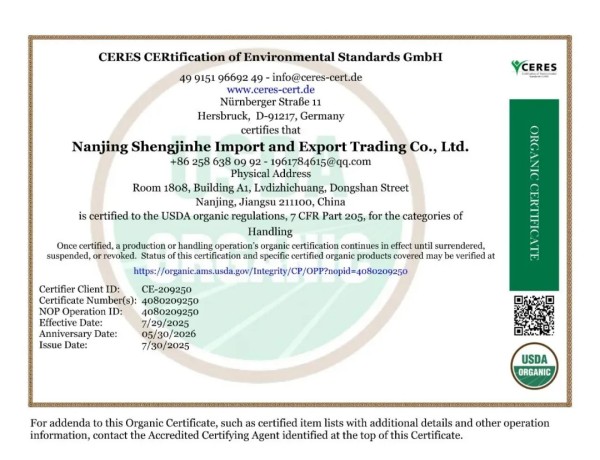原料追溯体系:所有原料须来自USDA认证供应商,每批次均需提供有机证书与交易证书,构成完整溯源链条;