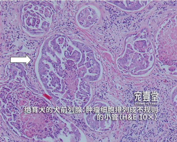 01【发病原因】 前列腺肿瘤是去势公犬中最常见的前列腺疾病,但该病在犬中仍占少数。一般认为引发该病的原因不是睾丸分泌的激素而是肾上腺、垂体激素,最常见的前列腺肿瘤为腺癌。 前列腺癌是一种局部扩散性肿瘤,早期易转移到局部淋巴结、脾脏和骨骼,常以直接扩散的方式转移到骨、膀胱、结肠以及这些器官的周边组织,其他的转移位置包括肝、脾、肾、心脏和肾上腺。