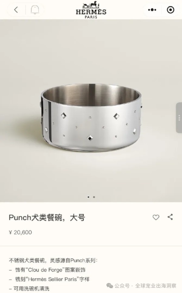 02 企业动态 海正动保投资2亿 建宠物处方粮工厂 近日,海正药业公告显示,其控股子公司海正动保将投资 2 亿元,在浙江台州设立全资子公司建设宠物处方粮项目,标志着老牌药企正式入局宠物食品赛道。 项目分两阶段推进,首阶段建设周期 24 个月,将搭建 2 条智能化生产线及配套仓储、检测实验室,全面投产后预计年产处方粮 1 万吨,有望成为国内重要生产基地。 此次跨界源于双重契机:一方面,宠物精细化养宠理念普及,处方粮市场持续扩容,这类针对肥胖、肾病等疾病的功能性产品,需兽医专业推荐,技术门槛高且利润率可观,逐渐取代部分普通主粮市场份额;另一方面,海正药业主业承压,2022-2024 年营收三连降,2025 年前三季度净利润仍下滑 10.55%,而海正动保 2025 上半年营收 2.5 亿元、净利 1735 万元,宠物业务成为战略新增长点。 药企跨界具备独特优势:研发上,处方粮本质是 “营养解决方案”,海正动保依托 15 项二类新兽药证书,以药品级研发标准保障产品临床有效性;渠道上,借由 “海乐妙” 等明星药品已搭建的数千家宠物医院合作网络,实现兽医信任快速转化;模式上,打造 “药品 + 营养” 一体化方案,通过学术推广精准触达核心决策者,提升宠物医院单客价值与客户粘性。 此次布局既契合海正动保从传统经济动物业务向宠物板块的转型,也顺应宠物食品 “功能化、医疗化” 趋势,凭借差异化竞争力有望在细分赛道占据重要地位。 宠物出行服务企业 华漫光驰获千万级天使轮融资 全球宠业出海洞察消息,上海华漫光驰信息科技有限公司近日完成千万级天使轮融资,投资方为全球知名海运物流企业运去哪。 此次融资将用于宠物出行信息化在线出票服务,链接国内宠物友好航司与机场,实现 “主人 + 宠物” 机票一站式便捷购买,搭建携宠出行线上 + 线下服务标准。 华漫光驰成立于 2024 年 5 月,是上海首家专注宠物出行综合解决方案的科技企业,致力于通过科技创新优化携宠出行体验。公司 2025 年已推出覆盖多家头部航司的宠物机票线上预订系统,涵盖检疫、多舱位选择、航空箱校验、医疗健康管理等配套服务,提供全生命周期出行解决方案。 创始人王玉娇表示,宠物已成家庭重要成员,携宠航空出行需求增长但流程繁琐,公司将借融资打通一站式购票流程,推动 “人宠同行” 普及。 爱马仕上架超 2 万元 不锈钢狗碗,大号款已下架 最近,爱马仕官网上架两款 2026 年春季新款不锈钢犬类餐碗,售价分别为 18300 元(小号)和 20600 元(大号)。 产品信息显示,两款狗碗均为 100% 不锈钢材质,法国制造,灵感源自爱马仕 Punch 系列,饰有 “Clou de Forge” 图案嵌饰,镌刻 “Hermès Sellier Paris” 字样,支持洗碗机清洗。 爱马仕客服回应称,新款狗碗官网均有展示,大号款此前仅剩极少量库存。截至检索时,该大号犬类餐碗已从官网下架,小号款仍有相关展示。 中国农科院兰牧药 与挑战动保签约,打破进口依赖 中国农科院兰州畜牧与兽药研究所(兰牧药)近日与天津市中升挑战生物科技有限公司(挑战动保)签约,转让 “普拉沙星原料”“普拉沙星片” 等四款涵盖化学药、宠物保健及中兽药的产品,打通科研成果产业转化通道。 核心产品普拉沙星片为第三代氟喹诺酮类抗菌药,具备双靶点杀菌、抗菌谱广、环境友好等优势,可应对猫上呼吸道感染、皮肤及尿路感染等临床痛点。此次合作实现 “科研 + 市场” 双轮驱动,标志着国产宠物原研药从 “仿制” 迈向 “创制”,将打破国际动保巨头在高端抗菌药市场的垄断。 该产品采用简单可控的直接压片工艺,成本显著降低,能让宠主以亲民价格获得媲美进口药的治疗效果,提升宠物治愈率,为国产宠物医药高端化发展注入新动能。