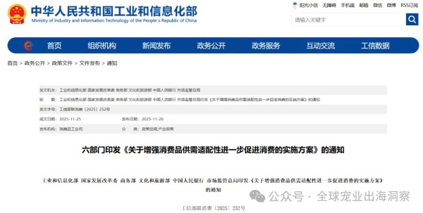 01 行业关注 工信部宣布发展 宠物周边等兴趣消费产品 工业和信息化部等六部门联合印发的《关于增强消费品供需适配性进一步促进消费的实施方案》中,将宠物消费纳入多元兴趣消费重点支持领域,为行业发展明确方向。 方案提出,要积极发展宠物周边等兴趣消费产品,将其作为拓展多元消费供给的重要组成部分。这一部署契合当前宠物消费市场快速增长的趋势,为宠物食品、用品、服务等相关产业提供了政策利好。 在政策整体框架下,宠物消费将借力多项配套措施加速发展:一方面,可依托方案中 “新技术新模式创新应用” 要求,推动宠物产品智能化、定制化升级,如开发智能喂养设备、个性化护理产品等;另一方面,能借助直播电商、即时零售等新业态拓展销售渠道,契合 “培育消费新场景新业态” 的政策导向。 同时,方案强调营造良好市场环境,通过强化质量监管、完善标准体系等举措,为宠物消费市场规范发展保驾护航,助力打造高品质宠物消费品。作为千亿级消费热点的重要组成部分,宠物周边产业将在政策支持下,进一步释放消费潜力,满足群众多元兴趣需求,成为消费增长的新亮点。