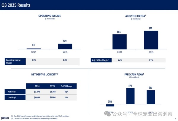 02 企业动态 知名零售商Petco Q3 盈利转正,推进转型备战增长 截至 11 月 1 日的 2025 年第三季度(13 周),Petco 净销售额 14.6 亿美元(同比降 3.1%)、同店销售额降 2.2%、毛利润 5.69 亿美元(同比降 1.2%)。 不过,盈利实现改善 ——GAAP 净利润 930 万美元(去年同期亏 1670 万美元),调整后 EBITDA为9860 万美元(同比增 21.3%)。 CEO Joel Anderson在近日的电话会议中表示,公司持续巩固运营基础,转型举措见效,目前处于 “第二阶段”(夯实盈利),正转向 “第三阶段”(回归增长)。 未来将聚焦四大支柱:差异化产品、可信门店体验、规模化整合服务、无缝全渠道体验。 Arcaplanet在意大利 新开了10家宠物门店 宠物零售商 Arcaplanet 收购 Hobby Zoo、Green Pet 和 Miele 三家连锁宠物店,在意大利新增 10 个销售点(含 5 家 Hobby Zoo 门店、1 家 Green Pet 门店及 4 家 Fidomania 门店),门店总数增至 610 家。 CEO Guillaume Seneclauze表示,此次收购印证了公司 “针对性扩张、巩固行业领导地位” 的增长战略,新门店将助力拓展关键区域网络。此前 10 月,该公司已在博尔戈・帕尼加莱镇开设第 600 家门店。 近期,Arcaplanet 在 “2026 年最佳零售商奖” 中斩获 “宠物零售品类奖”,该奖项由益普索意大利分公司与《Largo Consumo》联合颁发。 Arcaplanet 成立于 1995 年,在意大利服务超 260 万客户,2024 年 7 月起由福莱希集团控股,2024 年营业额达 6.76 亿欧元。