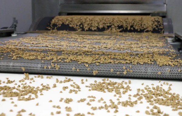 与普遍采用高温高压挤压成型的膨化粮不同,深酥焙的工艺更像一场精心控制的“炙烤艺术”。其核心在于210℃、180℃、140℃三个精确温阶的递进与协同:第一段210℃的瞬时烈焰灼烤,目的明确——高效灭菌,从源头建立安全屏障;随后温度降至180℃进入慢烘慢焙阶段,旨在温和脱水、锁住肉源本身的天然风味与热敏营养素,避免高温长时间处理带来的营养损耗;最后阶段140℃的轻烘,则专为塑造颗粒的物理结构服务,赋予其独特的蓬松酥脆质地。