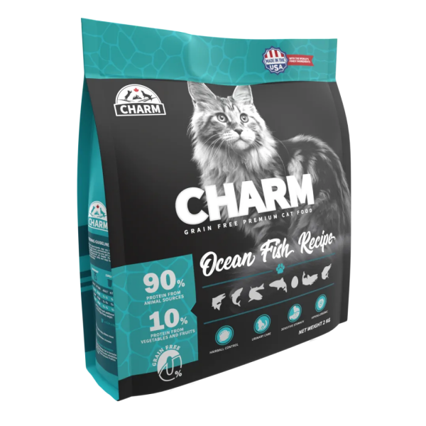 【海洋鱼配方猫粮】 首要成分为新鲜三文鱼并搭配多种鱼类,深海鱼中富含蛋白质、微量元素及不饱和脂肪酸,帮助维持心脏、脑部、关节的健康,有效提高猫咪免疫力;草本果蔬中含有蔓越莓、蓝莓,蕴含前花青素,能够有效呵护泌尿道和肠胃健康,满足猫咪的营养需求。