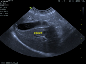 胆囊内呈现“猕猴桃征”或“星芒状”的回声。胆囊壁增厚、胆泥淤积、可评估胆囊是否破裂。