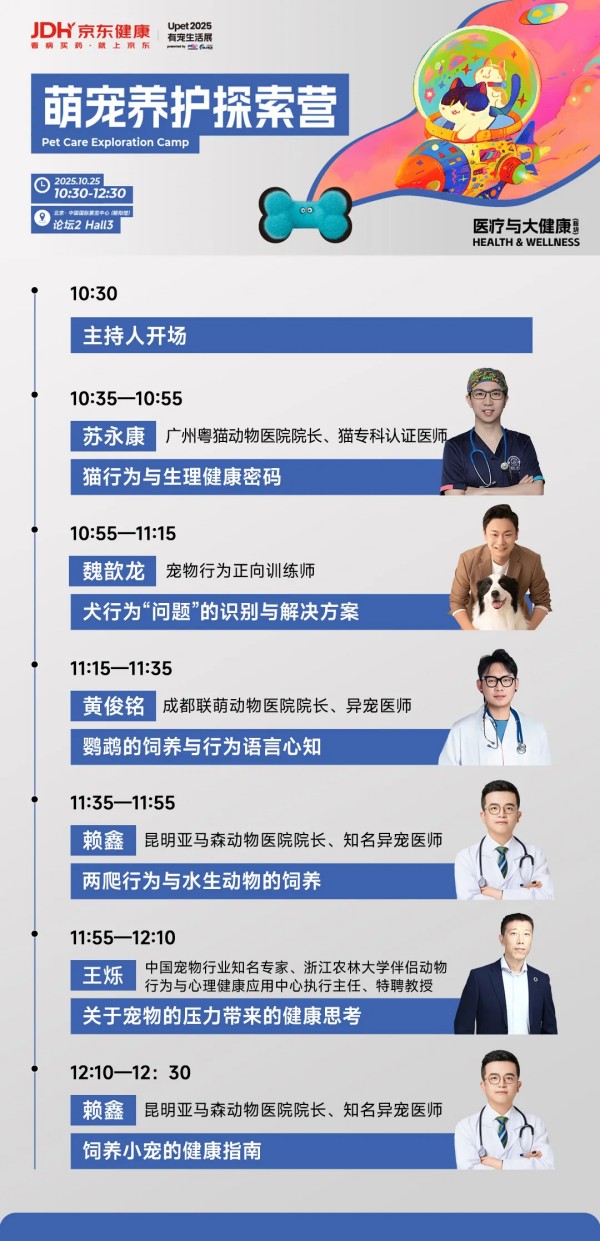如果你也想更靠近TA的世界,10月25日,欢迎来到「萌宠养护探索营」的现场,一场专为爱宠人士打造的深度交流盛宴,将在Upet有宠生活展中温暖开启。