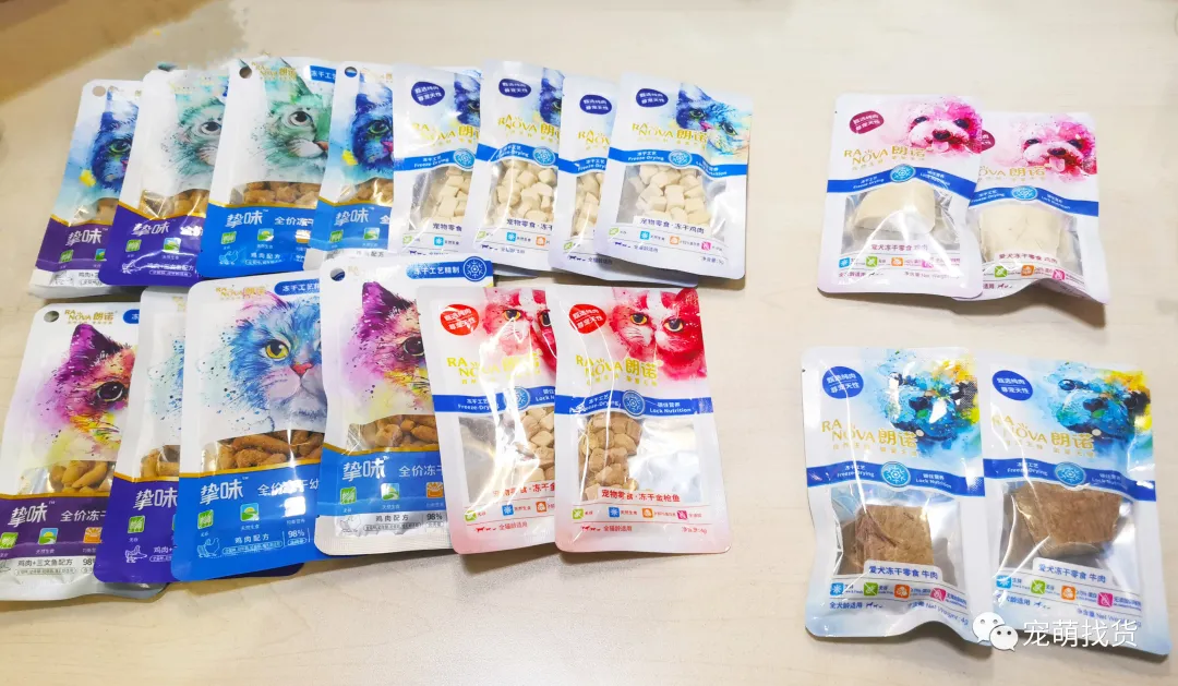 为满足各位对于此“好物”的深入了解,今日的好物试用活动的主角“朗诺宠物冻干盒”隆重登场。“朗诺宠物冻干礼盒”里共计18袋宠物冻干零食和主粮,包括: