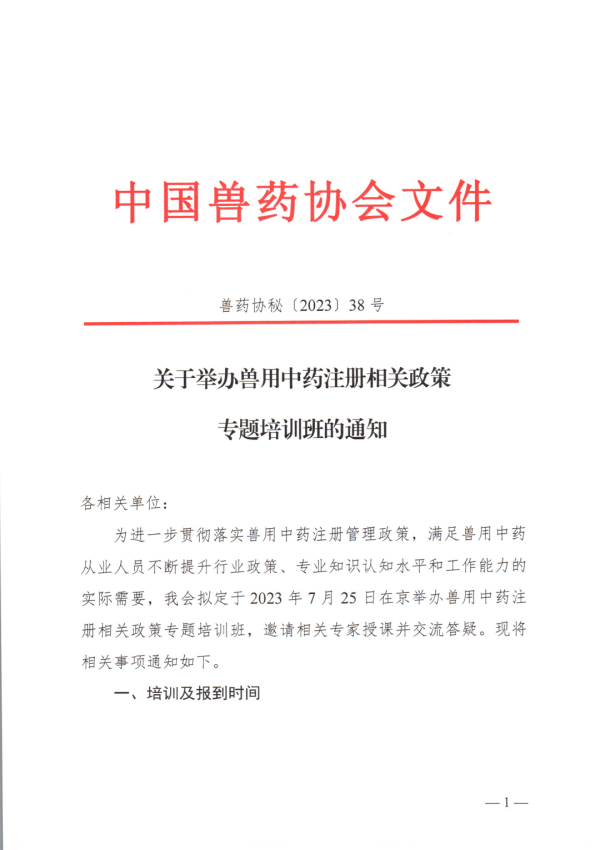 关于举办兽用中药注册相关政策专题培训班的通知