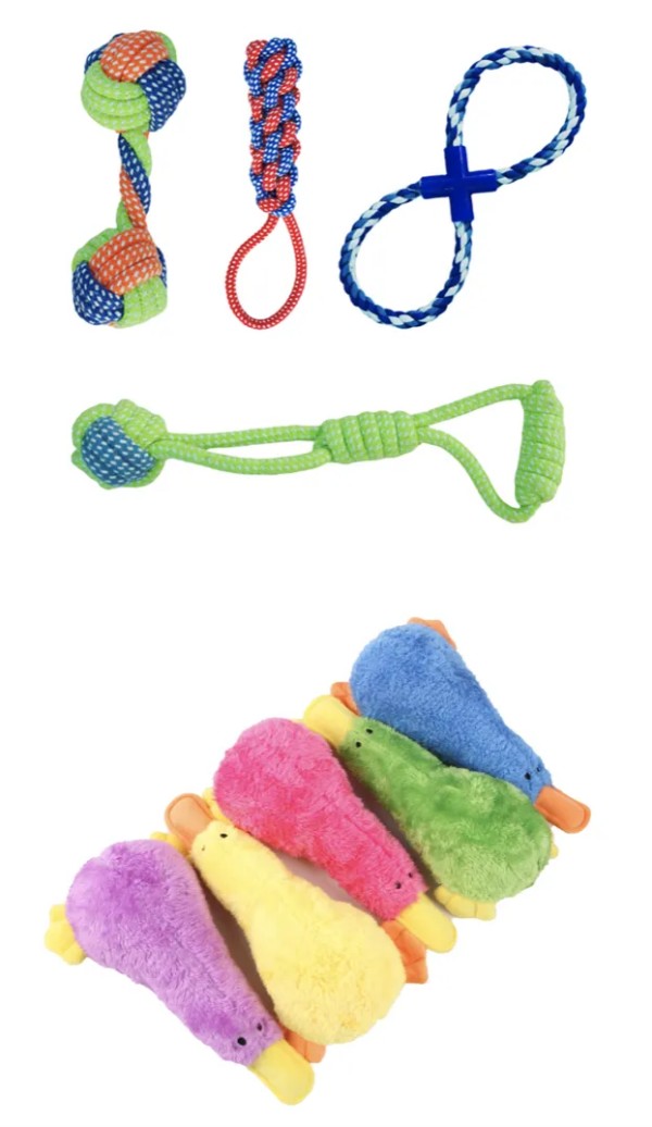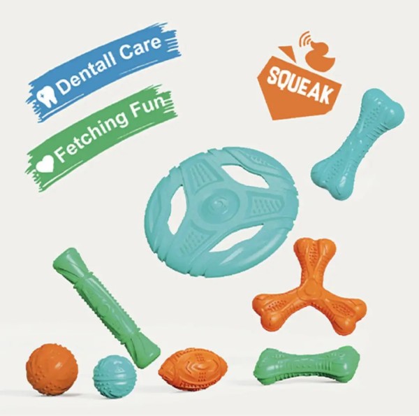 我们的宠物玩具以安全、耐用和天然材质为核心,提供三大品类,满足宠物啃咬、互动及陪伴需求。全系列采用热塑橡胶(TPR)、天然橡胶及棉绳/棉布材质,无毒环保,安心玩乐。 产品分类: 热塑橡胶(TPR)玩具 类型: 磨牙骨、防滑纹理球、洁齿棒。 特点: 高弹性、耐高温、可机洗。 优势: 适合大型犬或强力啃咬者,清洁牙齿并缓解焦虑。 天然橡胶玩具 类型: 空心漏食球、发声造型玩具、拔河环。 特点: 柔软耐咬,部分可生物降解。 优势: 呵护幼犬/老年宠物牙龈,环保之选。 棉绳与棉布玩具 类型: 打结拔河绳、毛绒玩偶、互动巡回绳。 特点: 可水洗、不掉纤维、边缘柔软。 优势: 安全耐撕咬,适合互动游戏(如拔河)或陪伴安抚。 产品优势: 安全认证: 不含BPA、塑化剂等有害物质。 持久耐用: 抗撕裂、耐啃咬,适应室内外环境。 简约实用: 专注天然材质与基础功能,回归玩耍本质。