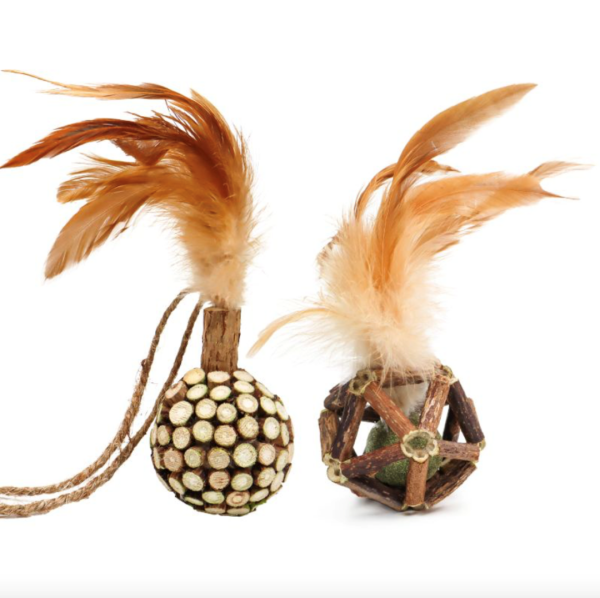 这款猫玩具能激发猫咪的天然玩耍本能,精心设计旨在丰富猫咪的玩乐时光、促进运动锻炼,提升猫咪身心健康。球体直径 55 毫米,采用天然银藤材质制成 —— 银藤是对猫咪极具吸引力的天然成分,能帮助猫咪缓解压力、增添乐趣,甚至有益牙齿健康。球内藏有一小颗猫薄荷球,猫咪会忍不住去触碰、舔舐;外部飘动的羽毛则增强了玩具的 “捕猎吸引力”。我们还贴心添加了一根挂绳,主人可将玩具悬挂起来,使其成为猫咪跳跃扑击的绝佳挑战。无论是抛向房间各处,还是手持晃动玩耍,玩具的纹理、气味与动态都能牢牢吸引猫咪,让猫咪的闲暇时光变成积极互动的欢乐时刻。