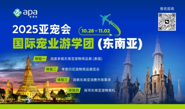 2025年10月29日-31日,东南亚宠物用品展(Pet Fair South East Asia)将在曼谷举办。作为重要的合作伙伴,10月28日-11月2日,apa亚宠会将组织中国品牌方、制造商、经销商、门店、达人...开启为期6天的泰国-印尼东南亚游学。 此行不但履新曼谷考察行程,还新增印尼调研线路,将实地参观印尼宠物用品展,走访当地宠物门店,洞察全球印尼独特的宠物消费习惯与市场偏好,精准把握其对中国宠物产品的接受度与潜在需求。 通过本次游学考察能更全面地绘制东南亚宠物行业地图,发掘不同文化背景下的差异化商机。这不仅是对东南亚宠物市场的一次深度剖析,更是一次与行业精英交流碰撞、共谋发展的宝贵机会。游学团名额有限,apa亚宠会诚邀宠业同仁报名! 下午:抵达曼谷,团体接机,入住酒店 全天:考察东南亚宠物用品展(泰国) 上午:商务考察 下午:商务考察 下午:抵达印尼,入住酒店 晚上:自由活动 上午:考察印尼宠物用品展览会 下午:商务考察 返程或自由安排 行程费用 游学费用: 游学参团费用:RMB 13800/人 亚宠会会员价:RMB 12800/人 费用包含: 1. 当地四星级酒店5晚(若2人同行同住可退房间差价) 2. 行程含曼谷→雅加达段机票 3. 团体接送机服务 4. 考察期间全程交通 5. 中文导游 6. 考察期间当地特色美食 7. 境外旅游保险 8. 展会门票(VIP通道) 费用不含: 1. 往返机票 2. 10月28日及11月2日的用餐费用 3. 护照、签证费等 4. 酒店房间升级费用及客房消费 5. 自费项目及其他个人消费 6. 不可抗力因素引起的额外支出及“费用包含”中未提及的所有费用 注意事项: 泰国对中国开放免签证入境,护照持有人无需办理旅行签证即可前往,停留30天;印尼对中国公民持普通护照目前需申请电子落地签(e-VOA)或落地签(VOA)入境,单次停留不超过 30 日,不可延期。 护照要求至少6个月有效期。 立即报名 开启您的东南亚宠业探索之旅吧! 可致电86-21-6195 3577 或添加下方亚宠会秘书处小亚微信咨询及报名 ※游学团报名满12人成团,上限20人,报名从速!