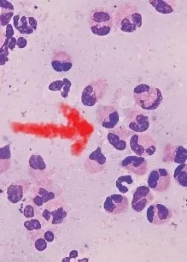 04【诊断】 1. 通常依据病史、临床所见病变排除其他类似症状来诊断。 2. 细胞学(组织压片):可见大量嗜酸性细胞,但如果病变出现继发感染,则会以中性粒细胞和细菌为主。 3. 皮肤组织病理学:结节性到弥散性肉芽肿,可见嗜酸性细胞、组织细胞和多核巨细胞,并有胶原变性的病灶。 4. 血液学检查:或许出现外周血嗜酸性粒细胞增多,但并非绝对,尤其是无痛性溃疡。