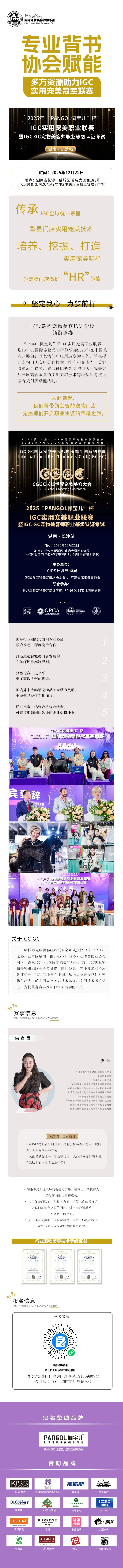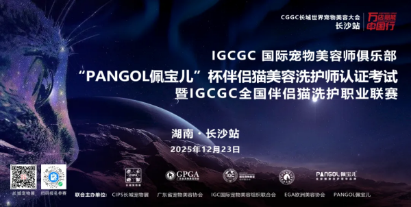 由长城宠物展、IGC GC国际宠物美容师俱乐部、广东省宠物美容协会主办,PANGOL佩宝儿洗护品牌、长沙瑞齐宠物美容培训学校联合承办的“PANGOL佩宝儿”杯伴侣猫美容洗护师认证考试暨IGC GC全国伴侣猫洗护职业联赛以及“PANGOL佩宝儿”杯实用宠美职业联赛暨 IGC GC宠物美容师职业等级认证考试,将于12月22、23日在长沙举办,这也是该活动在本年度的最后一站。