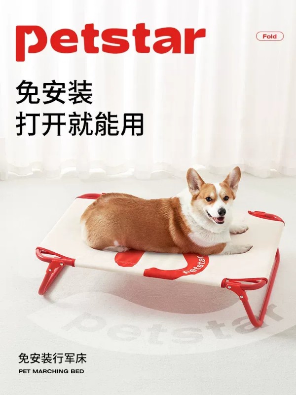 ①不用动手安装,不限季节随时躺平,省去安装的繁琐和时间,一展即开,用起来省心才更爱用 ②18cm悬空防潮,远离地面湿气,隔开潮湿地面和细菌侵袭,保证小窝的干燥与洁净,爱宠睡的更舒适 ③承重80斤,蹦迪打滚不摇不晃,床面尺寸加大至80*55cm,让它更加放肆做自己;600D牛津布耐得住牙尖爪利,触感舒适不摸皮肤,更加耐抓磨