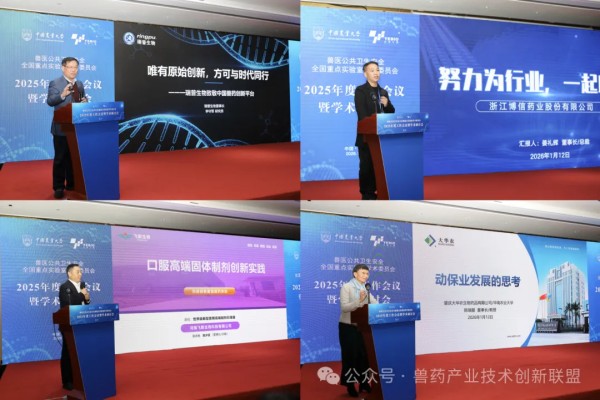 本次会议特别设置“产业创新对话”环节,由实验室副主任郝智慧教授主持。瑞普生物股份有限公司、浙江博信药业股份有限公司、河南飞默生物科技有限公司、肇庆大华农生物药品有限公司的企业负责人分别围绕原始创新、减抗替抗、高端固体制剂研发、绿色养殖的主题交流实践经验,表达了与实验室深化技术合作、共建创新平台、联合培养人才的积极意愿,为产学研深度融合注入新动力。