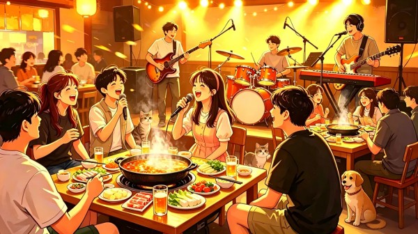 光吃火锅怎么够?我们还请来了专业乐队现场驻唱,经典老歌、流行金曲轮番上阵,跟着节奏旋律一起摇摆,氛围感直接拉满!