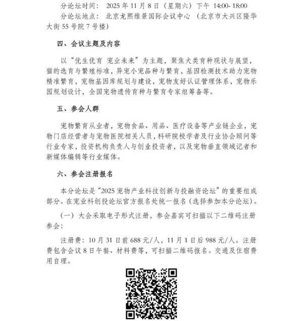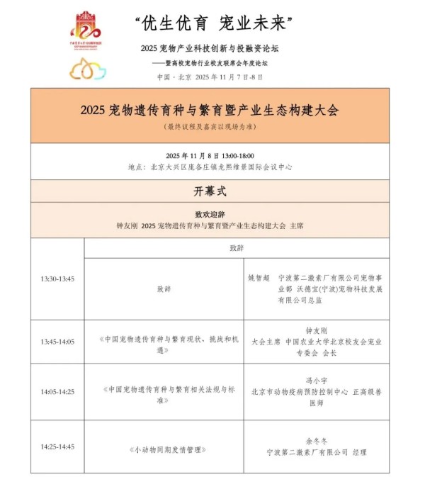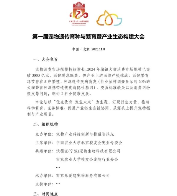 议程发布!第一届宠物遗传育种与繁育暨产业生态构建大会于11月8日在北京举办