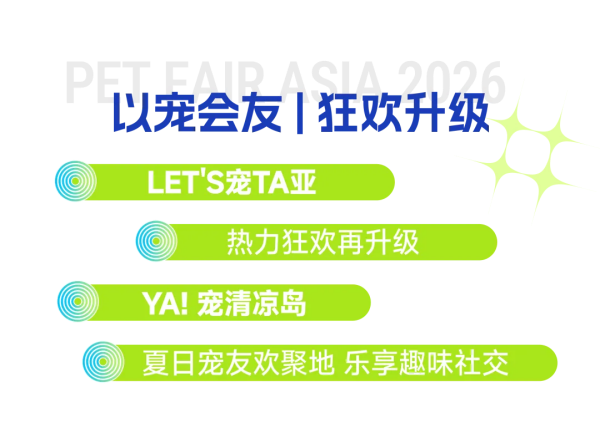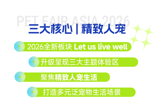 2026亚洲宠物展以全新视觉形象重磅亮相,重磅打造Let us live well核心主题展区,「精致养猫生活馆」、「人宠理想家」、「进口精品馆」三大主题专区,致力于提升宠物生活品质,为品牌搭建专业高效的贸易展示平台,为宠物爱好者带来创意升级的宠物友好新体验。