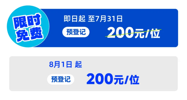 7月31日前限时免费登记!