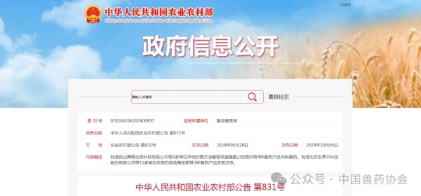 批准北京生泰尔科技股份有限公司等4家单位申报的芪翁黄柏散兽药产品变更注册,发布修订后的说明书和标签,自发布之日起执行;批准中国农业科学院特产研究所等11家单位申报的水貂细小病毒性肠炎灭活疫苗(MEVB株)等2种兽药产品变更注册,申请人按照农业农村部批准的变更事项,自行修改原批准的说明书和标签对应内容,并印制、使用。