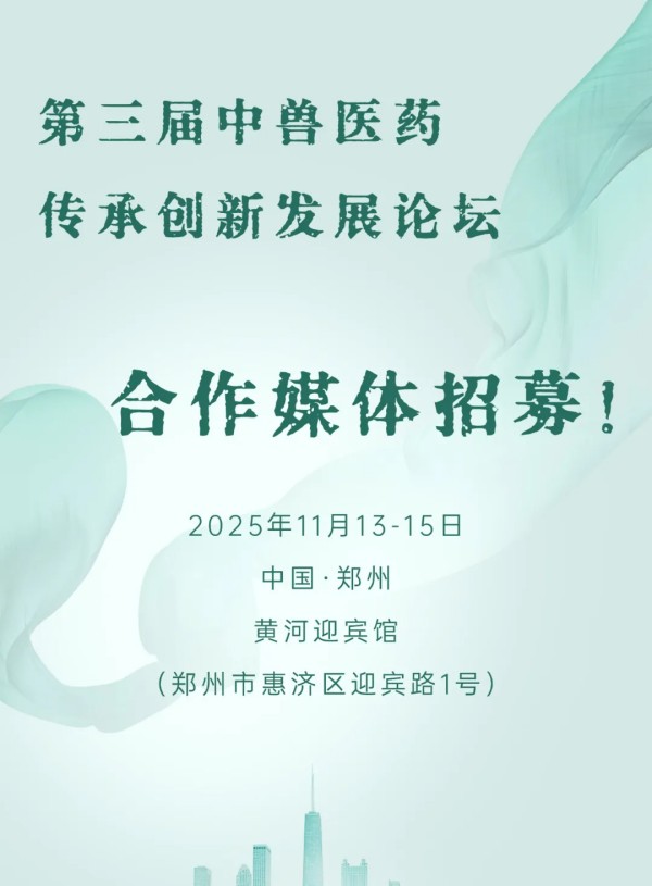 为推进中兽医药大健康理念,进一步拓展中兽医药在养殖场健康管理和疫病防控中的应用,发挥中兽医药在提升动物健康水平、保障畜产品质量安全、应对抗菌素耐药性治理等方面的积极作用,助力绿色健康导向型的畜牧业转型升级,中国兽医协会于2023年起已连续两年举办了中兽医药传承创新发展论坛。 第三届中兽医药传承创新发展论坛将于2025年11月13-15日在郑州黄河迎宾馆召开。当前,大会已进入筹备阶段,现招募合作媒体(包括大众媒体、行业媒体、自媒体等)为大会一同宣传助力,合作方式包括但不限于以下: 合作范围 01 直 播 为大会开幕式、论坛/专场进行现场直播或展位采访直播; 02 听 课 笔 记 为大会论坛/专场提供听课笔记撰写; 03 采 访 提供专家的文字采访或视频访谈 04 宣 传 在微信公众号/官网等平台上发布大会会讯、同期活动及课程等相关信息; 05 报 刊 杂 志 在报刊杂志上刊登大会会讯及宣传海报。 媒体权益 根据上述合作范围不同,可获得不同权益: 展位 大会会刊彩页 大会媒体证(全场通行) 直播/采访人员的交通食宿报销 大会宣传及物料的合作媒体logo曝光 会议信息 会议通知 (点击下方图片查看通知详情) 往届精彩回顾 1 传承创新·绿色发展——中国兽医协会首届中兽医药传承创新发展论坛在广州成功召开 2 中兽医·中兽药—One Health新质生产力 | 中国兽医协会第二届中兽医药传承创新发展论坛在成都隆重召开 具体媒体合作方案请联系 中国兽医协会宣传外联部 白沥冰 电 话:010-62129116-806 邮 箱:xx@cvma.org.cn