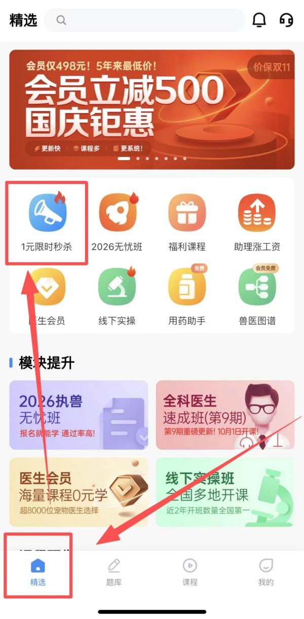 活动二:【宠壹堂】APP中每天限时1元秒杀课程,均价值上百元!“1元限时秒杀”在APP中位置如上图)