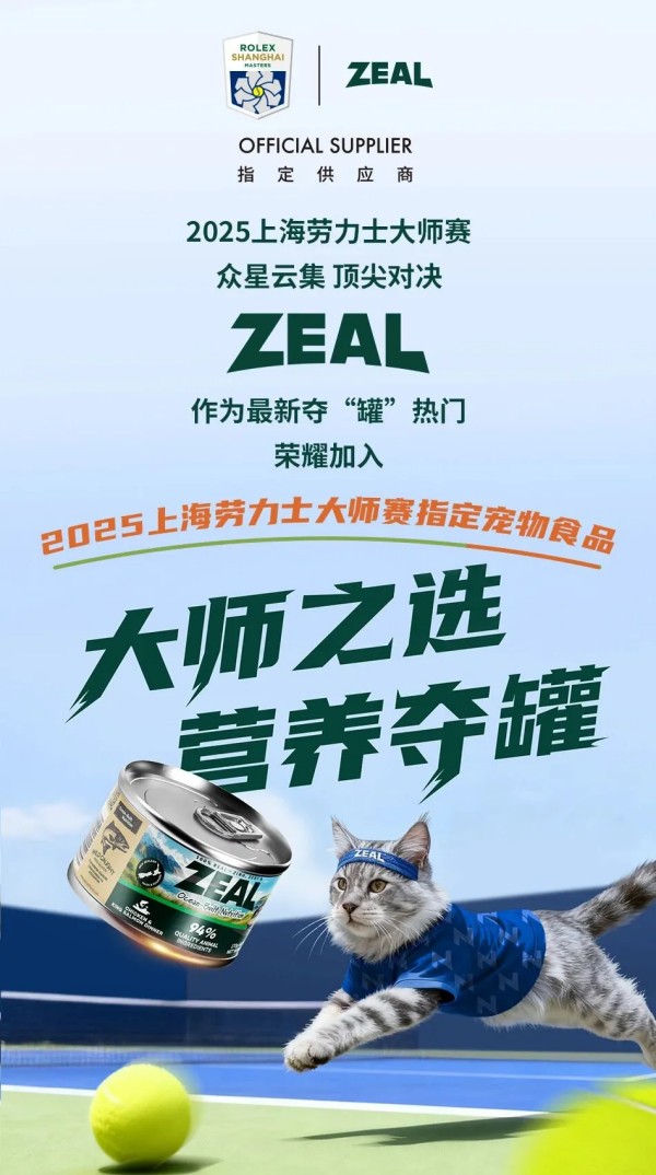 近期,宠物食品品牌ZEAL官宣正式成为2025上海劳力士大师赛指定宠物食品,ZEAL将于比赛现场设立专属宠物友好互动空间。