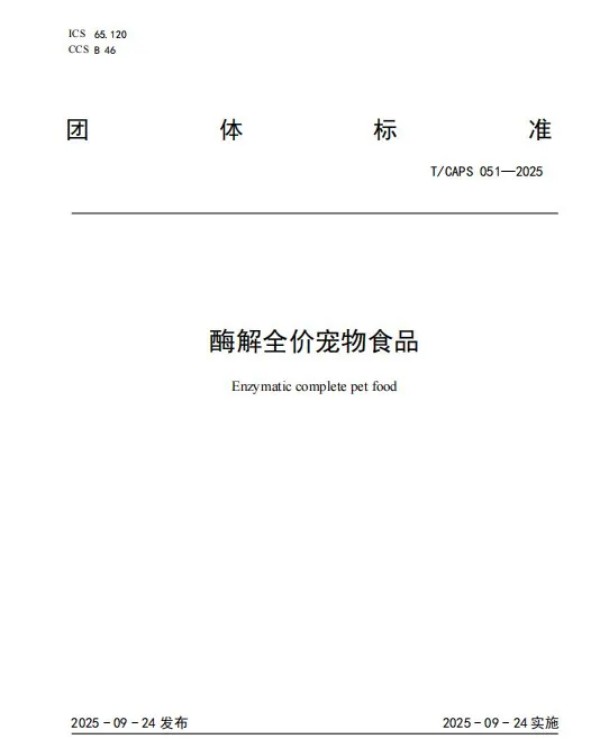 作为先行及领头者,基于前5年的技术积累,纯福于近日主导并联合江南大学、浙江大学等单位发布《酶解全价宠物食品》团体标准,该标准为国内宠物食品领域首个“酶解”标准。首次对“酶解全价宠物食品”作出明确定义,并设定关键量化指标。