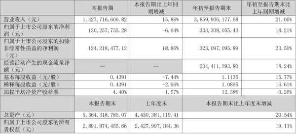 中宠股份发布三季报,报告显示,第三季度中宠总营收14.27亿元,同比去年增长15.86%;归属于上市公司股东的净利润为1.3亿元,下降6.64%。
