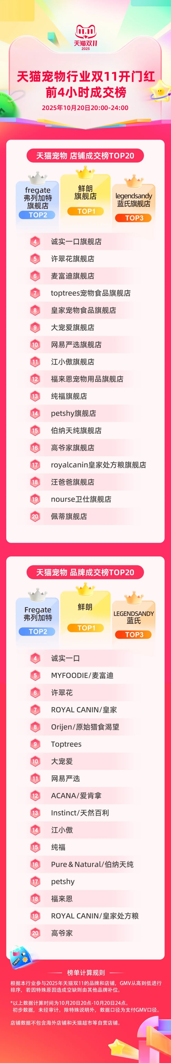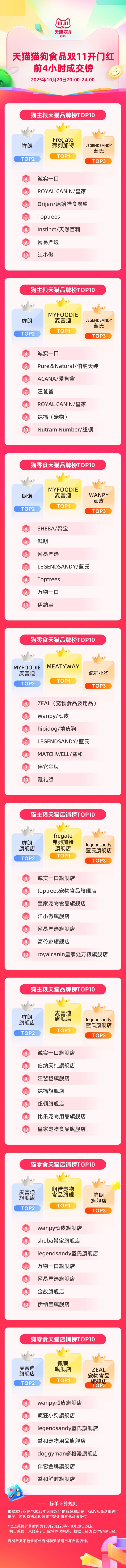 天猫宠物食品榜&淘天宠食店铺榜