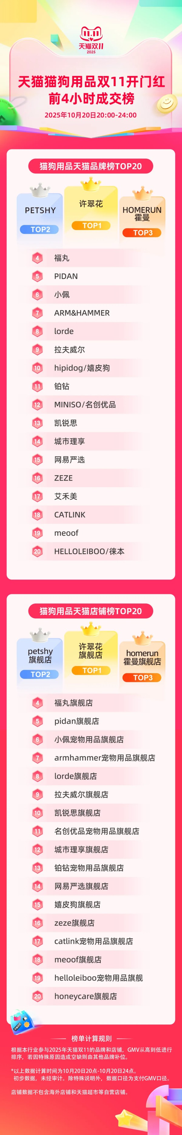 天猫宠物用品品牌榜&淘天宠物用品店铺榜