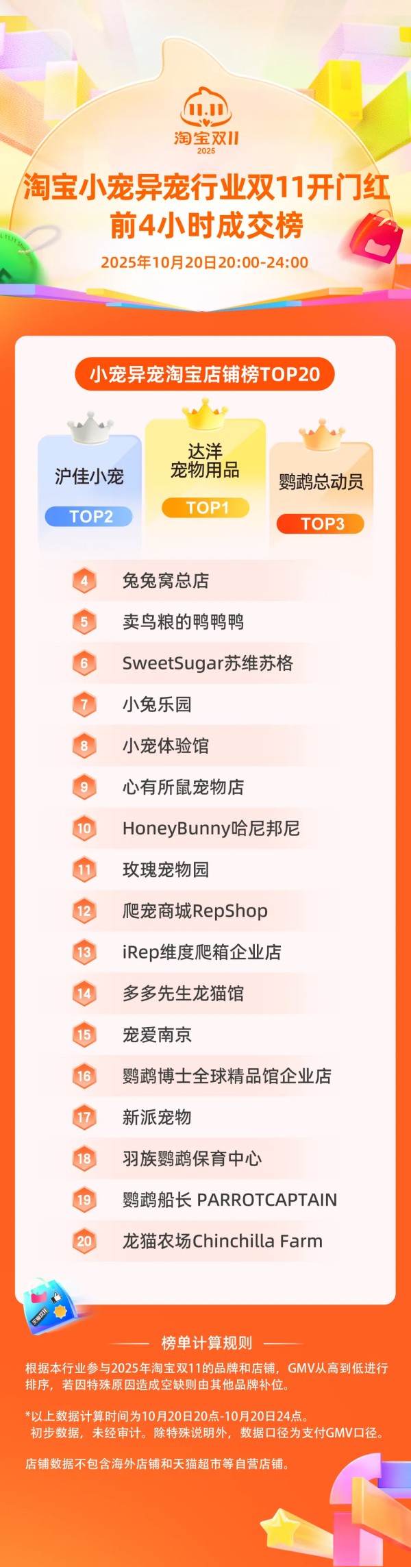 天猫小宠异宠品牌榜&淘天小宠异宠店铺榜