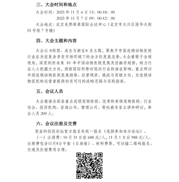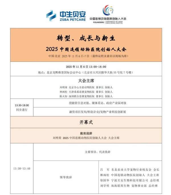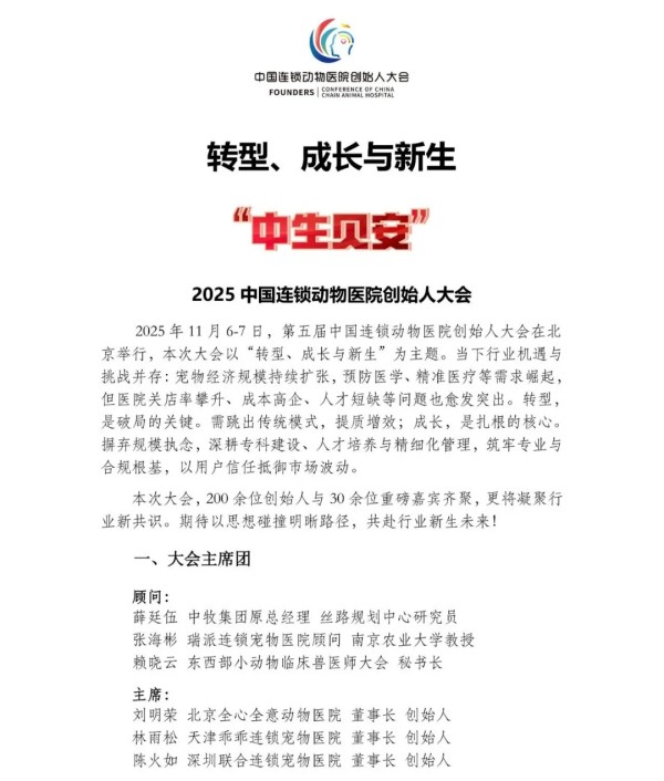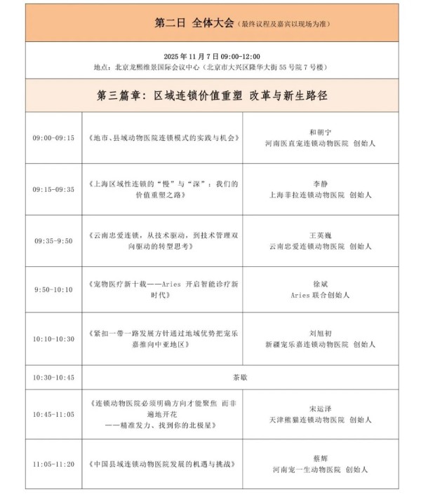 议程发布!2025连锁动物医院创始人大会11月6日-7日在北京大兴举办!