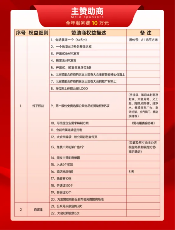往年风采 二、合作方案概览 我们提供多样化的合作方式,期待与您共同探索最合适的携手之道。 我们相信,真正的合作远超空间租赁。为此,我们设计了多层次的赞助方案,旨在让您的品牌与大会精神深度共鸣。 展位图 山海有梦,携手可达。我们已备好舞台与灯光,诚邀您成为这场行业盛事的共建者,与我们一同将“跨越山海,‘宠’爱前行”的理念,转化为触手可及的合作成果。 往年风采 席位有限,机遇当前。我们期待您的回应,并随时准备为您提供详尽的合作方案。 顺颂商祺! 第二届广东宠域联合年会(2025 东莞)组织委员会 联合主办:东莞市宠物诊疗协会|修水宠物行业商会 敬上 大会主席团: 郑阶炳 13532690625 汪 震 13580774997 王高峰 13712106572 匡 轼 13790210135 海 滨 13337222999