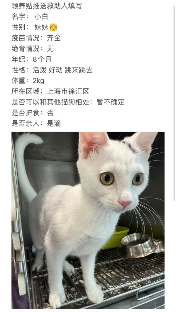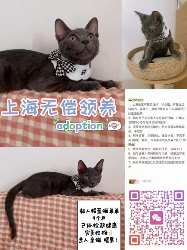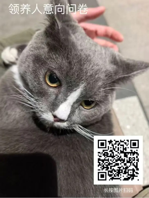 上海徐汇流浪的英短蓝白汤姆找领养!!非常亲人,性格很好,公猫,1-2岁左右。目前有点杯状已经在住院治疗,后期绝育后可以领养,现在找意向领养人啦,有意向的领养人可以扫码看下领养要求并填写问卷后加图中微信~