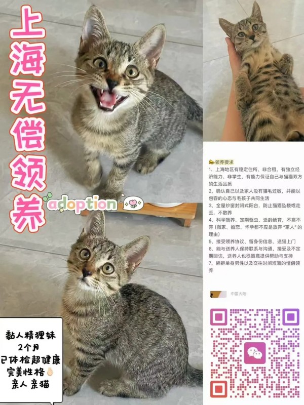 1、上海地区有稳定住所、非合租,有独立经济能力、非学生,有能力保证自己与猫猫双方的生活品质。