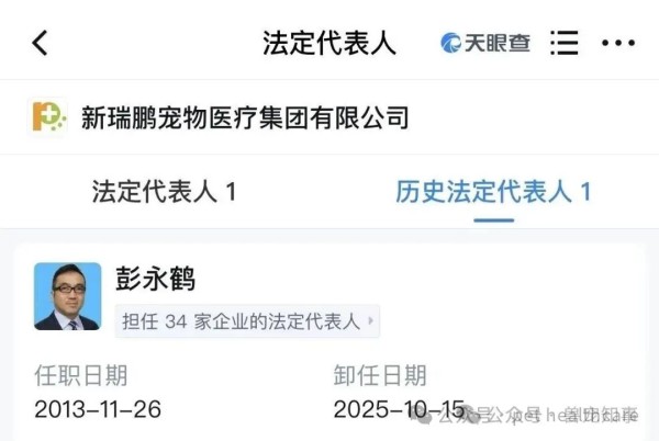 公开信息显示,自2019年新瑞鹏由瑞鹏(彭永鹤创立,400余家医院)与高瓴旗下700余家医院合并后,他一直担任集团董事长。但近期,新瑞鹏完成战略重组,高瓴资本通过谈判成为绝对控股股东。