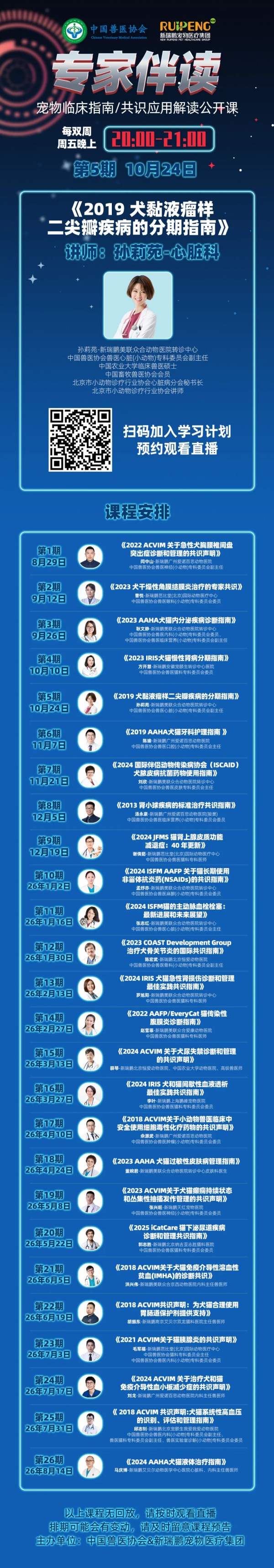 10月24日,心脏科专家孙莉苑深度解析《2019犬黏液瘤样二尖瓣疾病的分期指南》,扫码预约直播,跟着权威学干货,别让知识溜走~