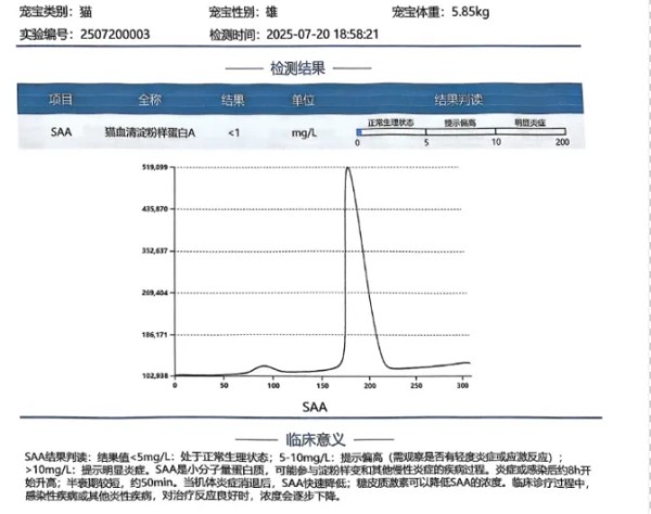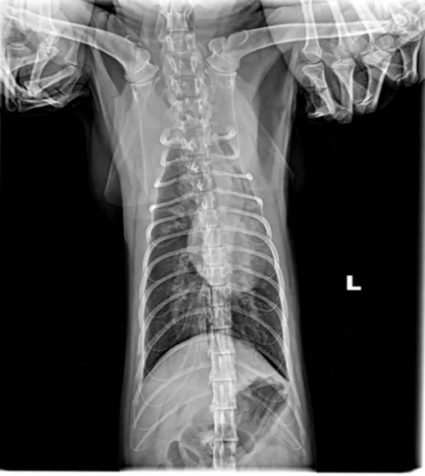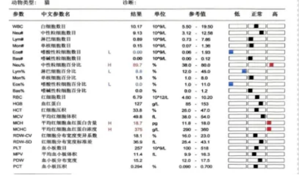 一、引言 猫咪肺炎根据发病快慢有急性肺炎和慢性肺炎之分,猫咪急性肺炎的症状主要表现为突然发高烧、呼吸不畅、腹泻等;慢性肺炎通常表现为长时间咳嗽、有痰、食欲下降、精神不振、呼吸不畅等。 猫咪如果患上肺炎就需要及时治疗,否则很容易引发相关的并发症,威胁到猫咪的性命。肺炎常见原因:感染性(细菌感染、病毒感染、寄生虫感染)、非感染性(吸入性、异物性、过敏性、继发性等) 二、病例基本信息及病史 2.1基本信息 一只缅因猫,雄性未绝育,体重5.85Kg,免疫不全,驱虫正常。 2.2主诉疾病史 最近几天精神良好,就诊当天发蔫,食欲不振,偶尔咳嗽,打喷嚏,4天前家里新领养一只小猫。既往病史 :疱疹病毒,杯状病毒,伯氏杆菌。 三、检查及化验项目和结果 3.1血常规检查 3.2 血清样淀粉蛋白检查 3.3生化检查 3.4fNT-PrOBNP猫N端脑钠肽前体 3.5影像学检查 四、诊断结果 肺炎;肺叶实变 五、治疗方案及预后 5.1经验性治疗 克维舒:一天两次,一次2ml; PO 麻杏石甘汤:一天两次,一5ml;PO 5.2复诊 用药2周后复诊,整体情况好转,咳嗽明显好转,喷嚏减少,分泌物减少,食欲恢复。炎症指标明显好转,肺部影像明显好转。 5.3复查结果 5.3.1血常规检查 5.3.2 血清样淀粉蛋白检查 5.3.3影像学检查 图4胸腔侧位 5.4治疗转归 巩固治疗:克维舒 一天两次,一次2ml,PO 该动物目前恢复良好,状态稳定,直至投稿前回访,一切正常。肺实变位置需密切监测,病变位置可能伴随终身。 六、讨论及小结 猫咪肺炎的发病原因一般是由细菌、真菌、病毒等微生物感染引起。甚至像寄生虫移行、外力因素、吸入性因素、机体免疫力下降等,都可诱发肺炎。严重的肺炎可能会导致肺部渗出增多、肺水肿等,引起急性呼吸困难。猫咪的肺炎在初期通常很隐蔽,甚至没有太大的症状和表现,发病非常突然,以精神沉郁、厌食、急性的呼吸困难为主,送医不及时容易耽误病情。该病例因为发现较早,治疗后整体预后良好。 肺炎的诊断:咳嗽的犬猫出现发烧、嗜睡、食欲不振或呼吸急促症状时应进行全面检查,血细胞计数和胸部X线检查评估是否存在肺炎。根据结果怀疑细菌性或支持细菌性肺炎的诊断时,应采集气管,支气管内或支气管肺泡灌洗进行细胞学检查,需氧培养、药敏实验和支原体培养。该病例未做相关检查,主人要求先对症治疗。 在开始抗菌治疗之前,都应该建议宠主进行培养和药敏实验,前提时动物状况足够稳定。但所有治疗检查应和宠主充分沟通,特别时需要长时间或管理时间比较长的病例,在治疗时应制定个性化治疗方案,将宠物主人的意愿,配合程度,可自由支配时间,动物配合程度都应纳入考量,从而提高治疗质量,护理质量以及医从性。 该病例综合考虑最终抗菌药物选用克维舒,一方面该病例未做培养及药敏,作为临床医生应选择一线广谱抗菌药物,安全性高的药物,从而提高治愈率。另一方面考虑到动物主人时间以及该猫吃药困难,克维舒易口服,操作简单,很大程度上减少猫咪应激,节省主人时间,同时增加了宠主成就感。从而提高了治愈率,也增加了宠主对医生的信任,所以最终选择了克维舒。 七、参考文献 1.Sykes, J. E. (2014).Feline lower respiratory tract disease. In J. E. Sykes (Ed.), Canine and Feline Infectious Diseases (pp. 161-173). 2.Reinero, C. R. (2011).Feline Asthma and Bronchopulmonary Disease. Veterinary Clinics of North America: Small Animal Practice, 41(2), 191–211. 3.Lappin, M. R., Blondeau, J., Boothe, D., Breitschwerdt, E. B., Guardabassi, L., Lloyd, D. H., ... & Sykes, J. E. (2017).Antimicrobial use Guidelines for Treatment of Respiratory Tract Disease in Dogs and Cats: Antimicrobial Guidelines Working Group of the International Society for Companion Animal Infectious Diseases. Journal of Veterinary Internal Medicine, 31(2), 279–294. 4.夏兆飞,陈艳云,王姜维主译.小动物内科学(第5版) [M].中国农业大学出版社,2019,11:297-300.