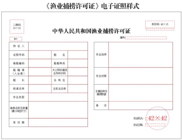 一、自2025年11月1日起,在全国范围内推行应用农业农村部本级颁发的《饲料和饲料添加剂进口登记证》、《饲料和饲料添加剂新产品证书》、《渔业船网工具指标批准书》、《渔业捕捞许可证》、《农业转基因生物安全证书(进口)》、《农产品质量安全检测机构考核合格证书》电子证照。电子证照与纸质证照同步制发、并行使用,具有同等法律效力。自2026年1月1日起,不再制发相应的纸质证照。