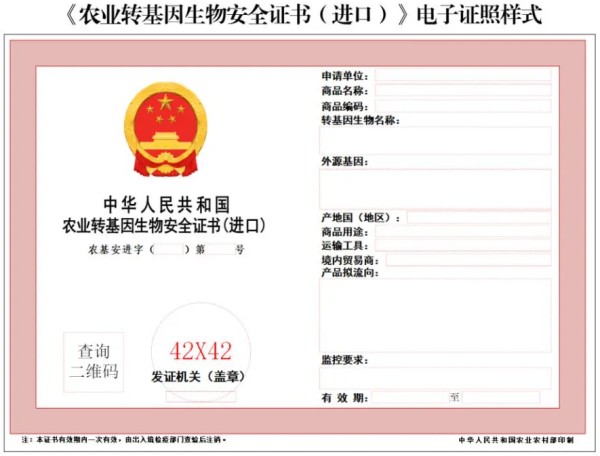 5.《农业转基因生物安全证书(进口)》电子证照样式