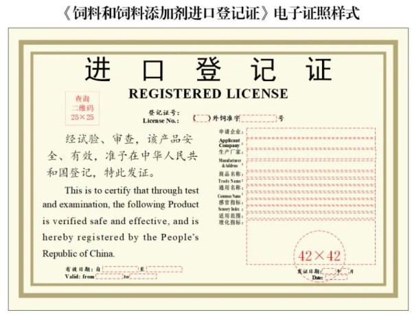 附件:1.《饲料和饲料添加剂进口登记证》电子证照样式