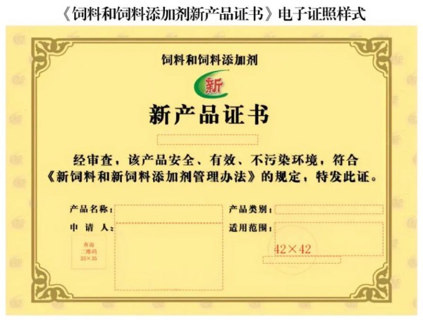 2.《饲料和饲料添加剂新产品证书》电子证照样式