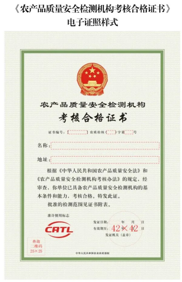 6.《农产品质量安全检测机构考核合格证书》电子证照样式
