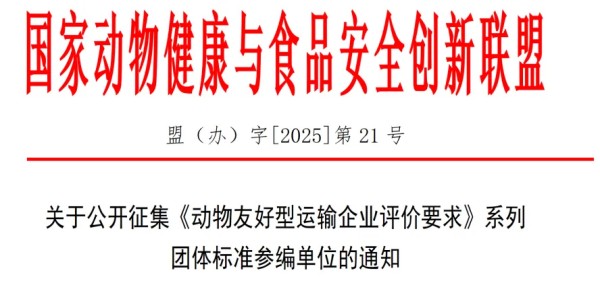 为深入贯彻落实《国家标准化发展纲要》,推动动物健康与动物福利领域团体标准建设,根据前期标准项目征集情况,为优质高效完成团体标准制定工作,使标准更具专业性、实用性和可操作性,现面向行业公开征集联盟2026年第一批拟申报团体标准的参编单位。具体事宜通知如下: