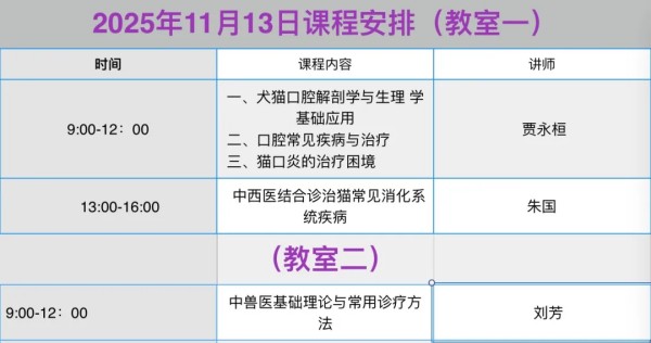 各相关单位、宠物医疗行业从业者、小动物医师同仁: 为进一步推动长三角地区小动物诊疗行业的交流与发展,为提升区域兽医诊疗技术水平,促进行业规范化、标准化建设,本次大会邀请国内外知名兽医专家就内科、外科、影像学、中兽医、心脏病学、神经学、口腔学、血液学、法律法规等热点领域进行专题讲座,现将相关内容公告如下,请参会兽医师积极扫描报名,协会将为大家做好服务。 大会信息如下: 1.大会名称:第八届长三角小动物医师大会暨2025年度安徽省小动物医师大会 会议时间:2025年11月12/13日 会议地址:安徽省合肥市丰大国际大酒店 2. 课程内容安排: 3. 主办单位: 长三角小动物兽医师大会组委会 安徽省小动物诊疗行业协会 4. 承办单位: 安徽省小动物诊疗行业协会 安徽农业大学动物医学院 安徽省畜牧兽医学会小动物医学分会 合肥市宠物行业协会 5、协办单位: 上海市畜牧兽医学会小动物医学分会, 江苏省宠物诊疗行业协会, 浙江省畜牧兽医学会小动物医学分会, 福建省宠物诊疗行业协会, 安徽农业大学动物科技学院, 安徽科技学院, 芜湖职业技术大学, 皖西学院, 池州职业技术学院, 安徽省饲料与健康养殖协会, (协办单位更新中) 6、参会对象: · 长三角地区及全国小动物临床兽医师、兽医助理 · 动物医学专业院校师生、科研人员 · 宠物医院管理者、经营者 · 宠物医疗相关企业代表 · 相关行业协会、组织成员 7、报名参会联系人: 王维星:15505517700 杨 勇:13329017888 张院生:13485670287 8、参会报名登记:扫码报名免会议费、讲义费、午餐费 安徽省小动物诊疗行业协会将全力以赴,在长三角小动物兽医师组委会的指导下,联合各方力量,精心策划组织,力争将本届大会办成一届高规格、高水平、富有成效的行业盛会!我们热忱期待与各位兽医师同仁、专家学者以及行业伙伴相聚在合肥,共享学术盛宴,共谋行业发展! 特此公告! 安徽省小动物诊疗行业协会 2025年11月28日
