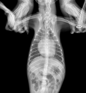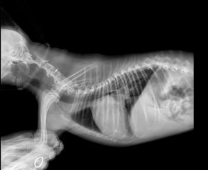 临床检查:精神状态很差,,听诊二尖瓣重度反流,心杂音重,站立不稳